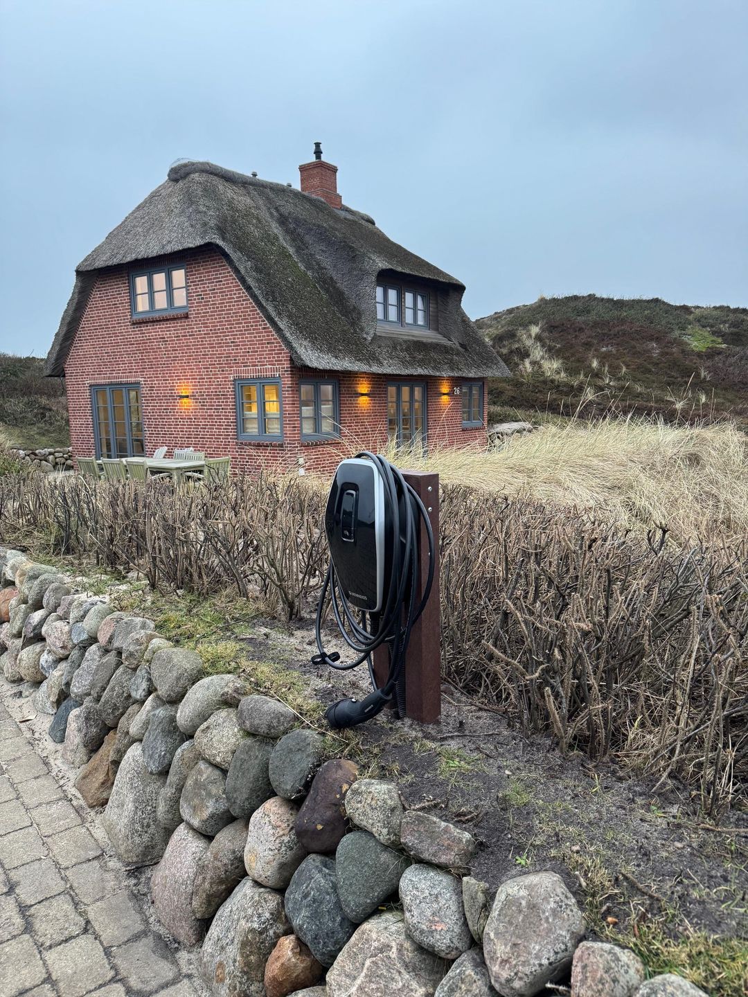 Haus Rystsandt bietet mit vier Zimmern und drei Schlafzimmern ausreichend Raum für Familien oder Freundesgruppen. Zwei Badezimmer, jeweils mit Dusche, sowie ein zusätzliches Gäste-WC sorgen auch bei mehreren Personen für einen angenehmen Tagesablauf. Die Fußbodenheizung sorgt im gesamten Haus für eine behagliche Atmosphäre, während der Kaminofen an kühleren Tagen wohlige Wärme spendet. Der Wohnbereich ist offen gestaltet und mit einer Sofaecke, Sesseln und einem Esstisch eingerichtet, sodass gesellige Abende und entspannte Stunden gewährleistet sind.