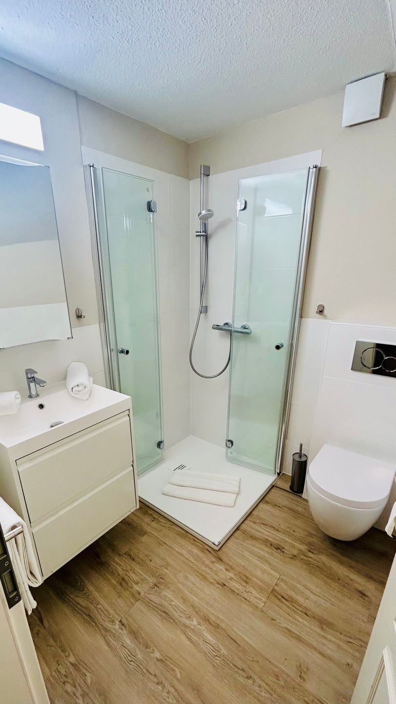 Wohnraum im EG, TV, Küchenzeile mit Geschirrspüler, Terrasse, im UG ein Schlafzimmer mit Doppelbett und ein kl. Zimmer mit franz. Bett, Waschmaschine und Trockner im Haus. Nichtraucher.